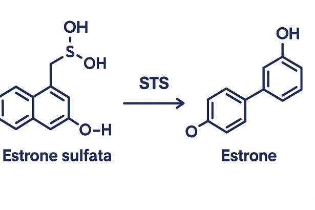 Steroidų sulfatazės (STS) fermentas skatina ląstelių proliferaciją, uždegimą ir susijusius endometriozės simptomus, pvz., skausmą ir nevaisingumą. STS paverčia estrono sulfatą į estroną (aktyvesnį estrogeną). Estronas vėliau gali būti paverstas į estradiolį, kuris yra pats aktyviausias estrogenas ir stipriausiai skatina endometriozės židinių augimą.