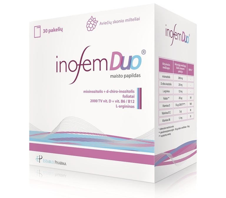 Inofem DUO® vartojamas kaip subalansuotos mitybos dalis, planuojančioms nėštumą ir skiriančioms dėmesį mitybai šiame etape.